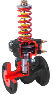 Регулятор нормально открытый регулирующий прибор, принцип действия основан на уравновешивании силы упругости деформации пружины настройки и силы, создаваемой разностью давлений в мембранных камерах. Непрерывный контроль автоматического поддержания заданного перепада давления рабочей среды изменением расхода регулируемой среды.